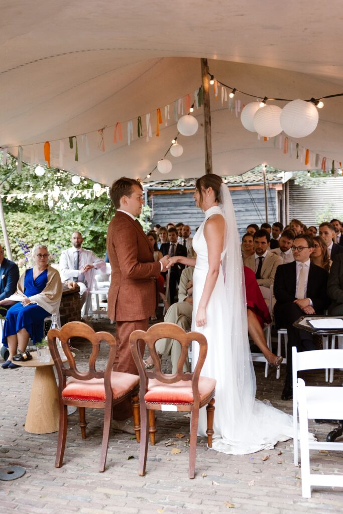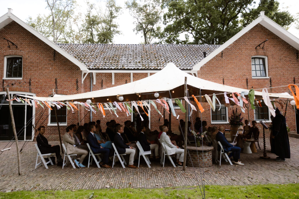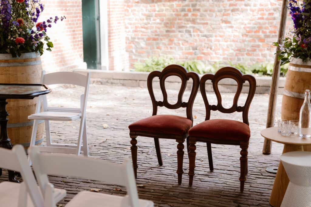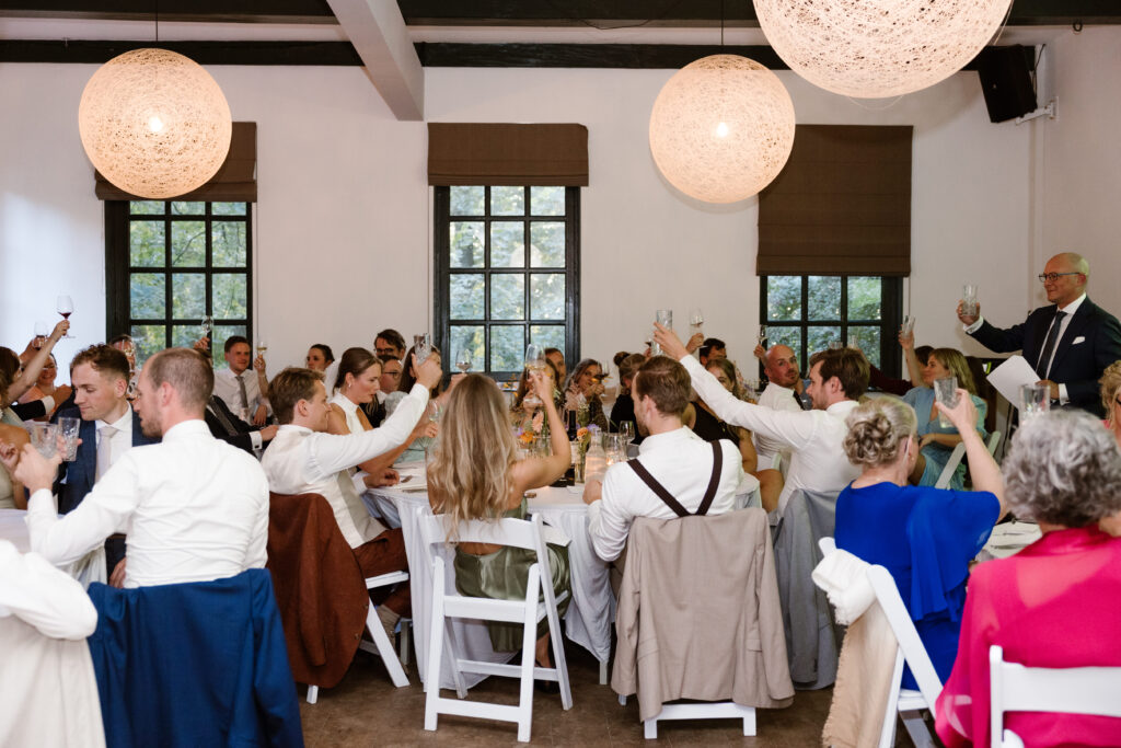 De borg is exclusief beschikbaar voor jullie bruiloft, wat zorgt voor een persoonlijke en intieme sfeer. Of je nu kiest voor een kleine groep of een grotere bruiloft: de borg biedt genoeg mogelijkheden. Buiten is het terrein perfect voor foto’s, een borrel of diner in de open lucht. Binnen vind je verschillende sfeervolle ruimtes waar jullie de ceremonie of het feest kunnen houden.