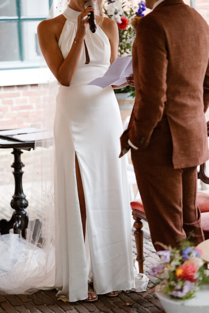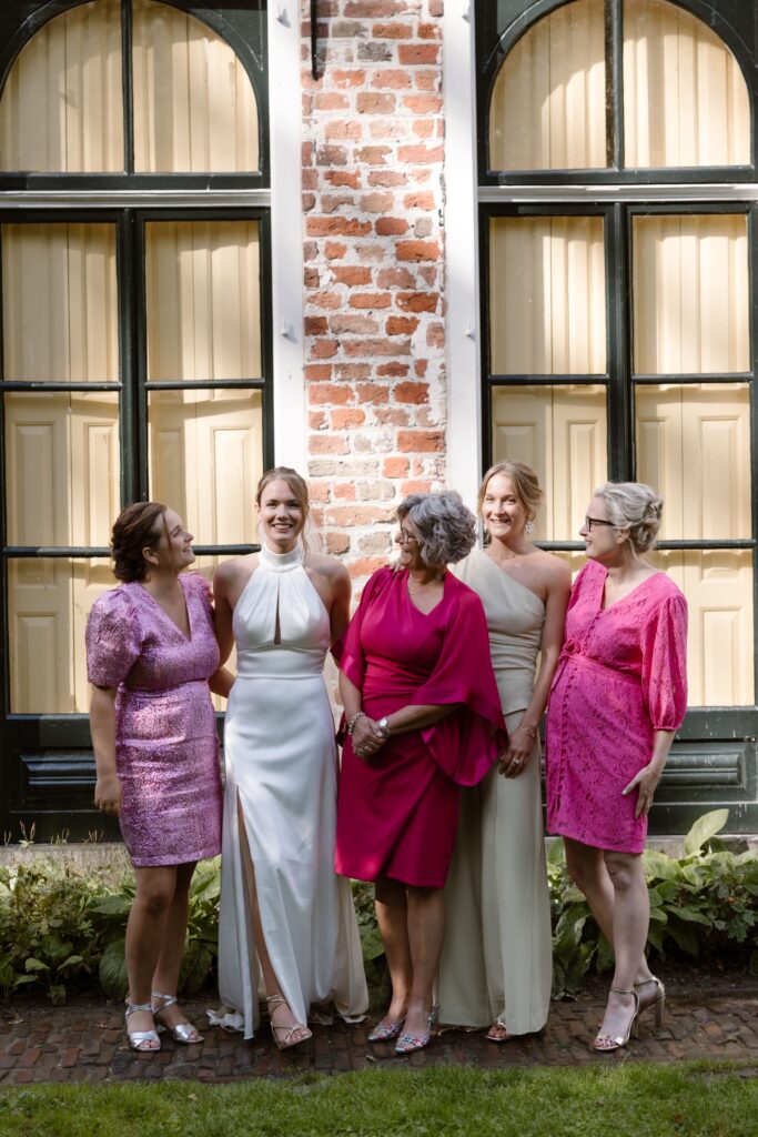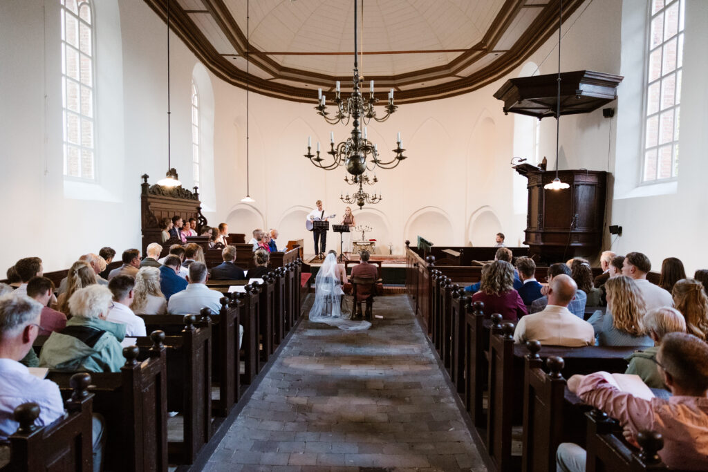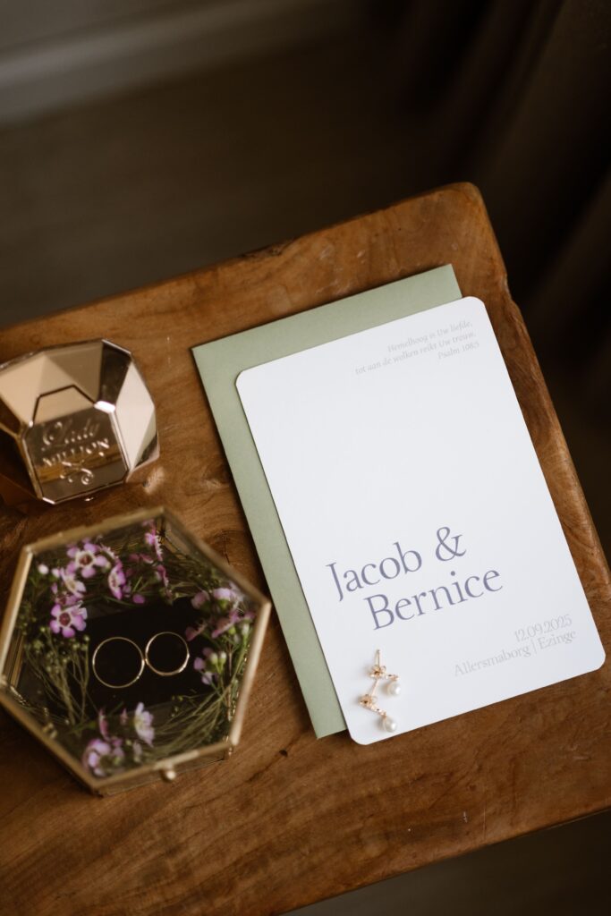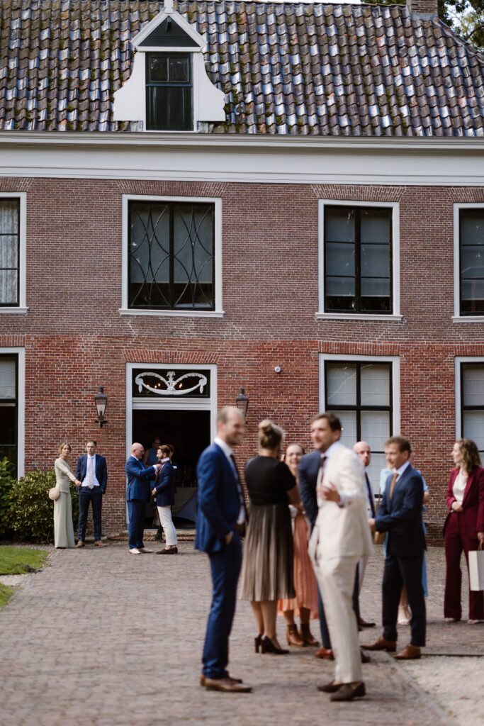 De Allersmaborg ligt in het Groningse landschap, net buiten Ezinge, omringd door water en groen. Je kunt er zowel binnen als buiten trouwen, afhankelijk van het weer en jullie voorkeur. De borg heeft meerdere ruimtes die flexibel gebruikt kunnen worden voor ceremonie, borrel, diner en feest. Alles kan op één plek plaatsvinden, wat de dag overzichtelijk en ontspannen maakt.